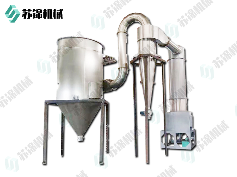 气固混合阶段:经过粉碎后,物料在闪蒸干燥主塔内与加热介质充分的接触。其中,气固混合的好坏决定整个干燥速率的大小。为了提高气流速度,在闪蒸干燥机的底部设置倒锥结构装置。