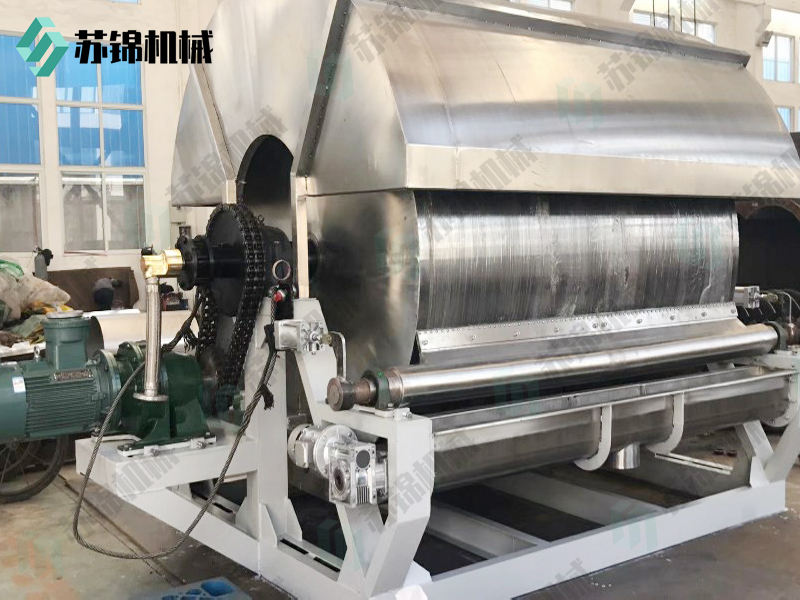 3、干燥时间短。物料的干燥周期一般只有10-300秒,适合于热敏性物料。若将滚筒干燥机设置在真空器中,则可在减压条件下运行。
