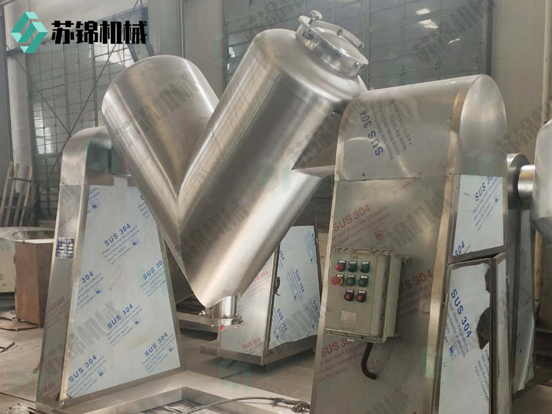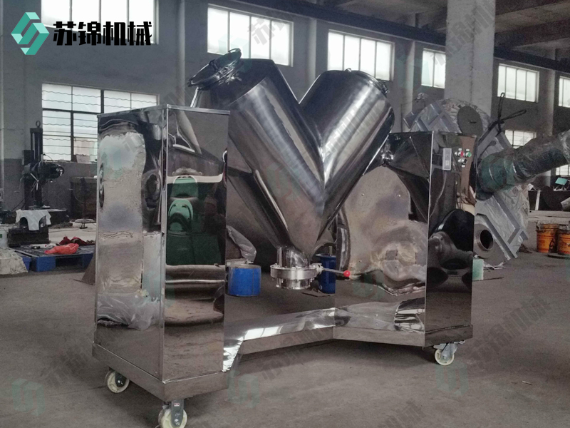 该机混合筒结构,混合效率高、无死角,采用不锈钢材料制作,内外壁抛光处理,外形美观,混和均匀,适用面较宽,并能根据用户的要求配套强制搅拌器,以适合较细的粉粒、块状、含有一定水份的物料混合之用。