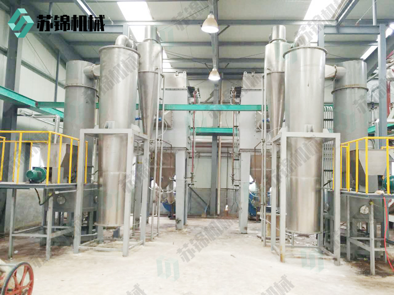 粒度分级:在干燥主机的上部设置环形挡板,此被称为闪蒸干燥机分级器。当物料运动经过该分级器时变会受到离心力的作用,呈现不同旋转半径螺旋上升的趋势。粒径较小的物料从分级器的内孔排出;颗粒较大的物料被留在干燥室内继续粉碎,待达到标准粒度从内孔排出。
