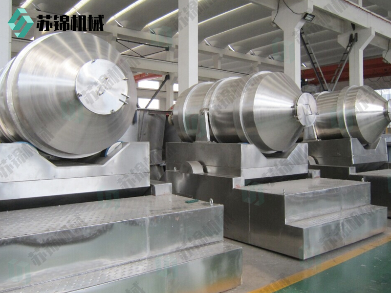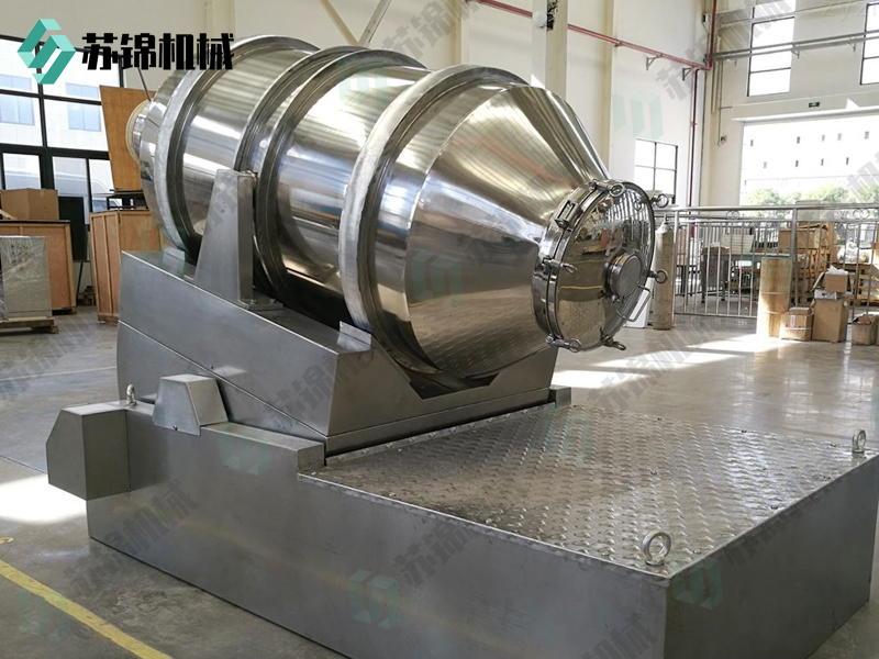 EYH系列二维运动混合机的转筒可同时进行二个运动,一个为转筒的转动,另一个为转筒随摆动架的摆动。被混合物料在转筒内随转筒转动、翻转、混合的同时,又随转筒的摆动而发生左右来回的掺混运动,在这两个运动的共同作用下,物料在短时间内得到充分的混合。EYH二维混料机适合所有粉、粒状物料的混合。