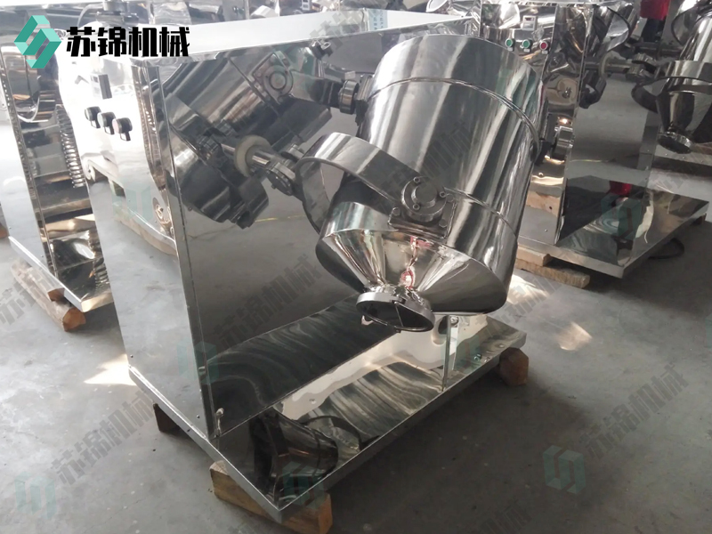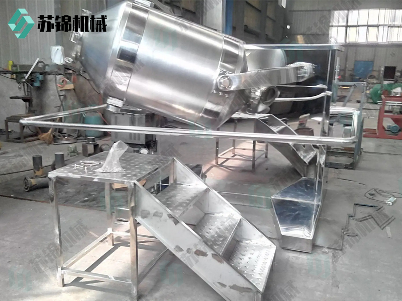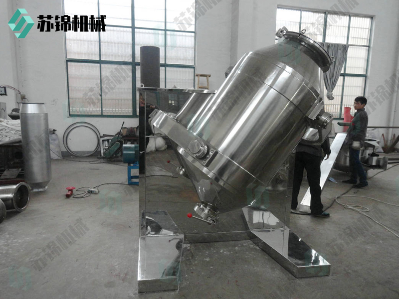 结构:该机由机座、传动系统、电器控制系统、多向运动机构、混合筒等部件组成。与物料直接接触的混合筒采用不锈钢材料制造,桶体内外壁均经镜面抛光。