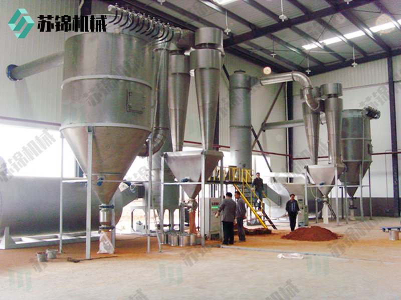 气固混合阶段:经过粉碎后,物料在闪蒸干燥主塔内与加热介质充分的接触。其中,气固混合的好坏决定整个干燥速率的大小。为了提高气流速度,在闪蒸干燥机的底部设置倒锥结构装置。